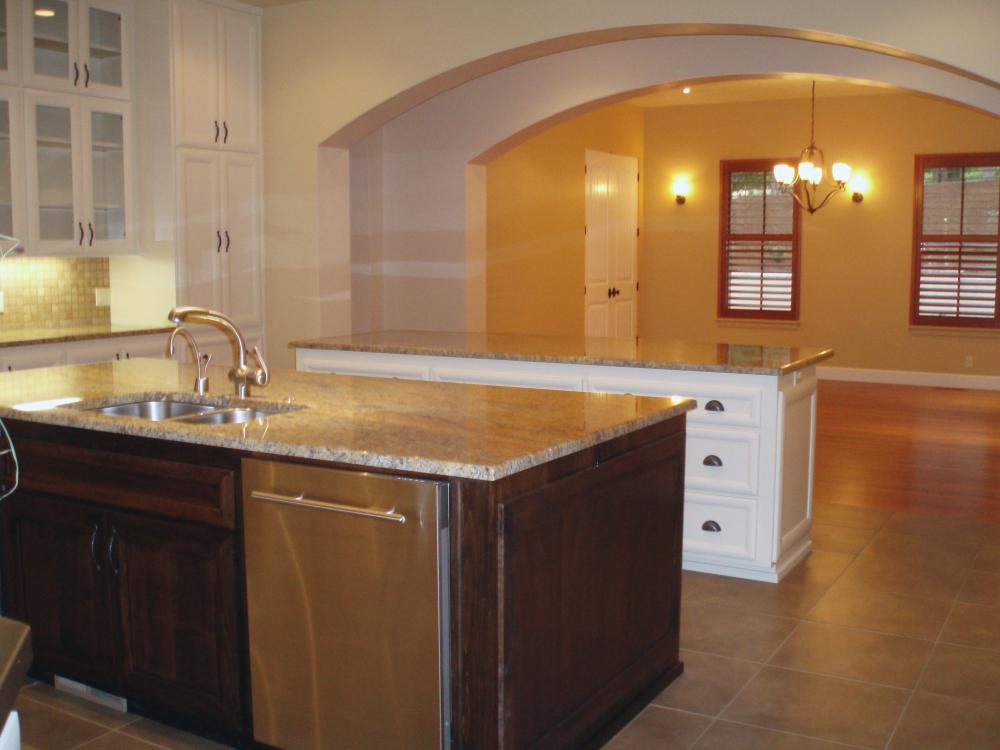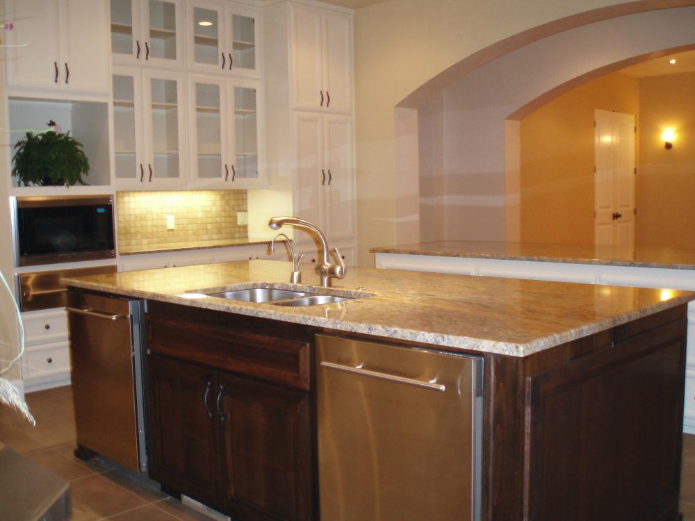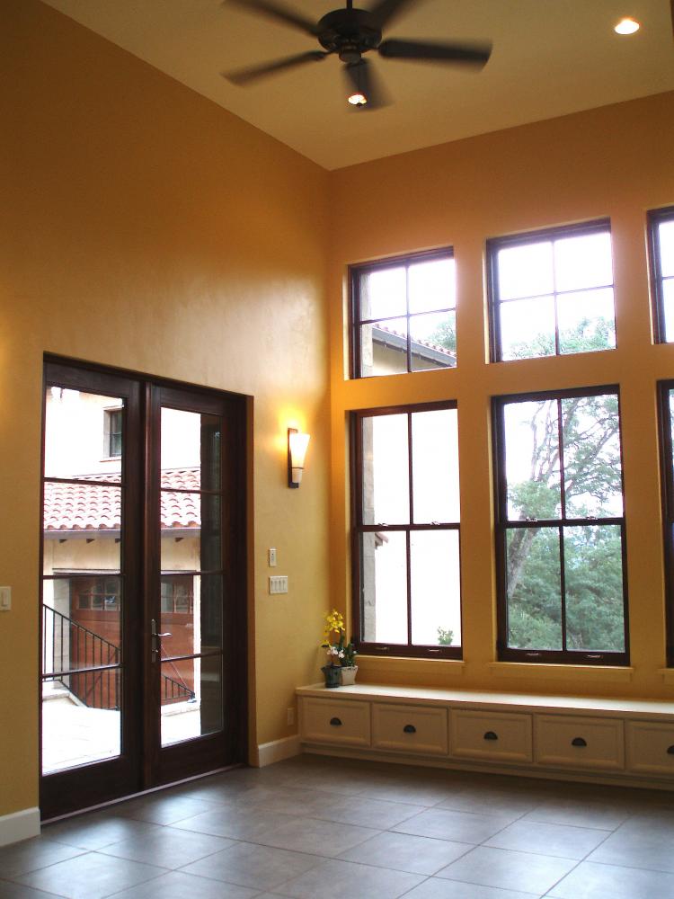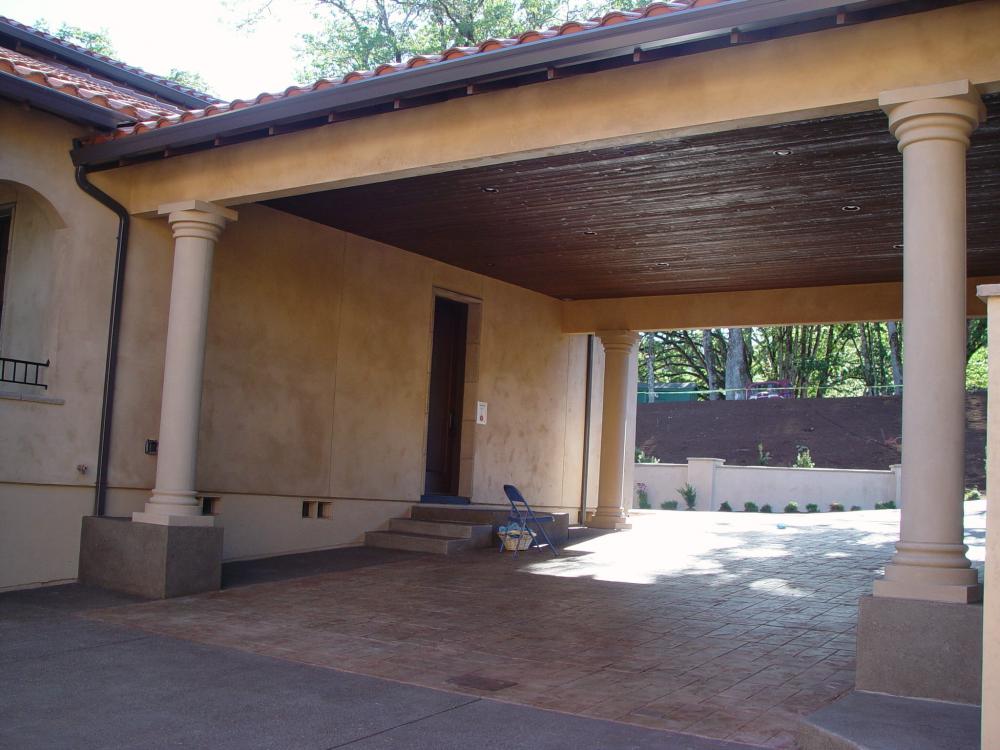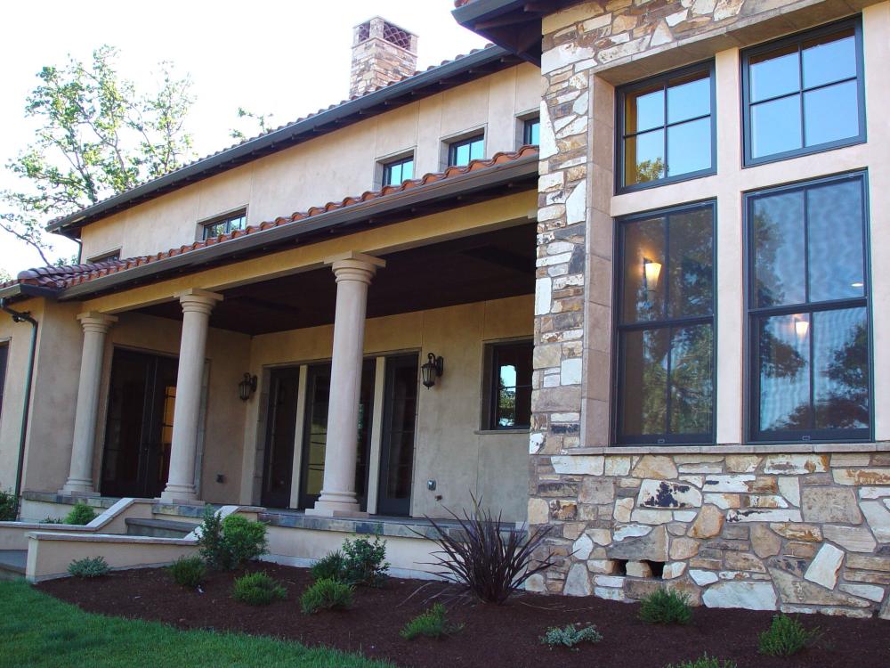 Tuscan Custom Build Unique double wall framing for the recessed windows and doors. Covered car portico with stamped colored concrete. Outdoor living space featuring stone fireplace. Unique double wall framing for the recessed windows and doors. Detached Garage with shop. The owners were looking for a clean Tuscan look without the use of trim on the doors and windows. Built in stained wood cabinetry. Hidden full access to media equipment. Wood windows and doors. Formal Dining room with wood shutters. Double Island kitchen This kitchen featured 2 dishwashers for quick clean up for a large family and entertaining. Gourmet kitchen with Wolf range. Unique double island for large family gatherings. Kitchen nook area with built in seating for storage. Upstairs laundry/hobby room, with slate floors, silestone counters and apron front sink. Upstairs laundry/hobby room, with slate floors, silestone counters and apron front sink. This home features a large mud room with personal hanging and storage space for family members. Master bath double vanity with custom wood trim around the mirror. Custom walk in shower with center above head Rain shower, side wall shower heads, custom tile, and glass block window. Custom railing featuring both wood and wrought iron and custom iron newel post. Accent wall painting.