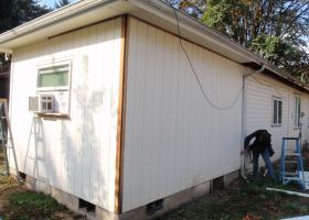 A home gets some windows and siding.